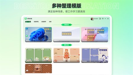 一键整理桌面文件,从此告别杂乱无章的电脑桌面,还你清爽干净,工作学习倍轻松! 一键使用动&静态高清壁纸,海量多风格壁纸等你挑选! 自定义分区,一键整理收纳,动&静态壁纸美化,还有更多惊喜等你发掘。