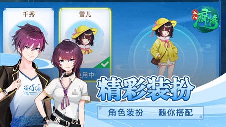 ——角色装扮,随你搭配 3D牌桌让你身临其境,超酷胡牌特效让你刺激加倍。百变装扮,多种角色随心搭配,助力搓麻体验。萌妹,帅哥,还是御姐,多款角色任你选择,并且可以搭配手臂,饰品和装扮,让你在搓麻之余还能体验角色养成的乐趣。