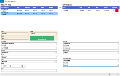 一个订å•,å¯ä»¥æ·»åŠ å¤šä¸ªå•†å“ä¿¡æ¯ï¼Œå¹¶è¿›è¡Œç»Ÿè®¡å„ç§é‡‘é¢ä¸Žå•†å“库å˜ã€‚ 订å•å…³è”仓库ã€ä»˜æ¬¾æ–¹å¼ã€ä¾›åº”商ã€å®¢æˆ·ã€å…¶ä»–è´¹ç”¨ç‰æ•°æ®ã€‚ 所有订å•å¯ä»¥é€šè¿‡æ—¥æœŸè¿‡æ»¤æœç´¢ã€‚