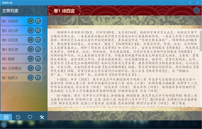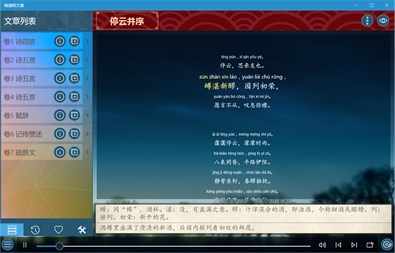 本应用的每篇文章都配有真人朗诵音频、拼音、注释及翻译。