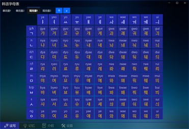 此应用可以作为学习韩语字母的辅助工具,功能包括读音学习、笔顺学习、书写练习、记忆训练等,可以促进韩语字母的学习和记忆,从而为学习韩语打好基础。