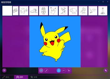 此应用可用于高级简笔画基础辅助教育,功能包括自由绘画、临摹绘画、绘画填色、图片填色、步骤学习等,可以打开本地图片文件进行临摹,也可以将画好的图及填色结果保存成图片。