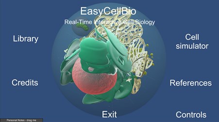 EasyCellBio is the ultimate software for everybody interested in cell biology! EasyCellBio offers a new insight into the animal cell biology by providing fully detailed and interactive 3D models and environments built from scientific data. In EasyCellBio the user can manipulate and learn about every major elements and structure of the animal cell in a simple interactive and fun way. The user can also write, paste and save his own notes or texts. Two types of notes windows are available, one follows the user everywhere in the software and the other is relative to each chapter. This feature allows for example teachers to copy/paste and display their courses inside the software. EasyCellBio is the perfect complementary tool for students and teachers learning and teaching cell biology.