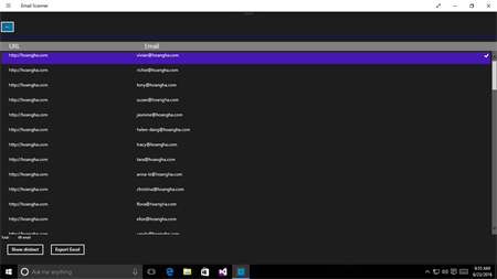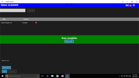 App is a tool that can scan email address from website. User enter url of website and app will scan all email address if website share it. Support 10 url to scan concurrency. Language support : English , Vietnamese. App do not scan website with login. App do not scan SPA website. App do not scan if website's certificate is expired.
