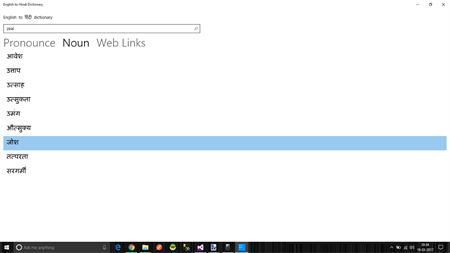 Note: This app is an universal port of the famous app: English to Hindi Dictionary (windows phone 8.x)