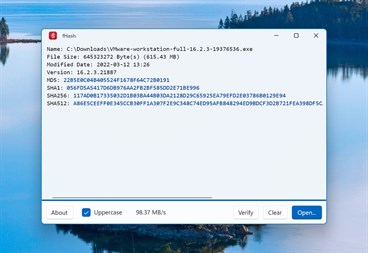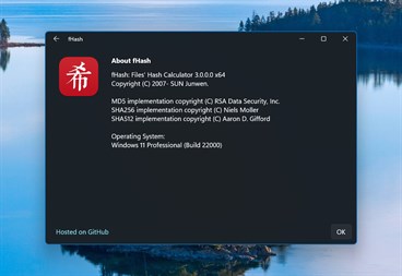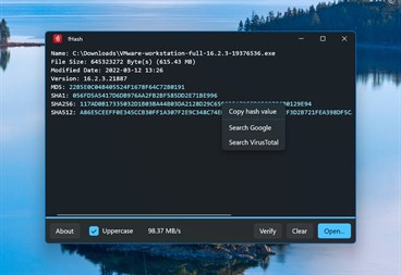同时计算 MD5,SHA1,SHA256 和 SHA512。 支持拖放。 与资源管理器的上下文菜单集成。 支持 Windows 10 (1903) 及之后的版本 (x64 和 arm64)。 支持深色模式。