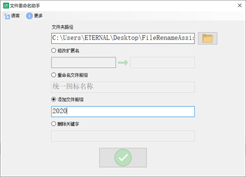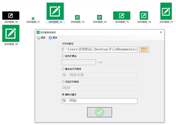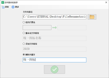 添加文件前缀,示例(zxy , 123... >> aa_zxy , aa_123...) 删除关键字,示例(zxy123 , abc123... >> zxy , abc...) 重命名文件前缀,示例(zxy , 123... >> aa_1 , aa_2...) 修改扩展名,示例 ( .png >> .jpg ; .doc >> .docx)