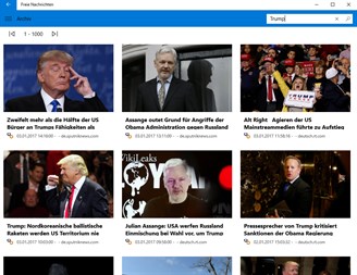 - Hauptseite: enthält die letzten 300 Artikel - Archiv: enthält alle Artikel seit der ersten Benutzung der App Beide Seiten mit Suchfunktion (Suchen eines "leeren" Begriffes setzt die Suche zurück.