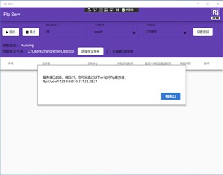 操作步骤: 1、启动本软件; 2、单击“选择根文件夹”选择要您共享的文件夹; 3、单击“启动”,启动ftp服务器; 4、在同一局域网内的另一台PC机上,打开FileZilla等ftp客户端软件上传或下载文件; 5、完成文件共享后,单击“停止”停止服务器;或者,您可以关闭本软件的窗口来退出本软件; 6、对于类似打印扫描一体机的客户端,可以使用以下地址ftp://user1:123456@192.168.1.100:21来上传或者下载服务器上的文件,其中,user1为您设定的用户名,123456为您设定的密码,192.168.1.100为您的计算机的局域网IP地址,21为您在本软件中设定的端口,软件将在启动服务时提示您正确的访问地址; 7、本软件支持windows系统资源管理器的登录操作:打开windows资源管理器->在地址栏中输入:ftp://user1:123456@192.168.1.100:21,其中,user1为您设定的用户名,123456为您设定的密码,192.168.1.100为您的计算机的局域网IP地址,21为您在本软件中设定的端口,登录成功,您便可以在windows资源管理器中管理您设定的共享文件夹中的文件; 8、本软件支持各种ftp客户端软件。