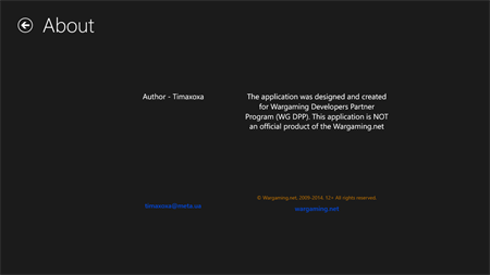 The application gives the possibility to view and compare the specifications of tanks from the game World Of Tanks. The application was created for Wargaming Developers Partner Program (WG DPP) contest. Garage Tanks Inspection is NOT an official product of Wargaming.net.