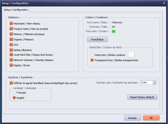 GlassCockpit is installed transparently above your windows desktop in order to always leave you the choice of your wallpaper image. You can place each measuring instrument wherever you want on the screen using the graphical interface.