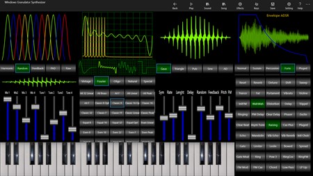 The Wave Granulator and the Granulator Synth lets you create wide orchestral sounds and ambient PADs and play them with an external MIDI Keyboard as a sound expander or with an internal touchscreen keyboard. You can also play MIDI song files with these sounds.