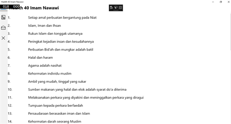 Aplikasi Hadith 40 Imam Nawawi di dalam Bahasa Malaysia untuk Universal Windows Platfom (Windows 10 PC dan Mobile, XBOX dan juga Holo Lens)