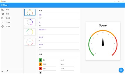 提供一个简易的生成图表(Chart)的工具,用户只需要输入或者选择,即可生成精美的图表(Chart),包括有(线形图,条形图,气泡图,饼图,仪表图)