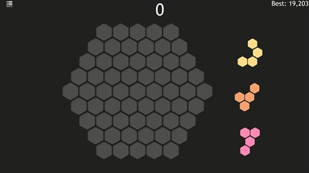 这是一款极具挑战性的休闲游戏,运用你的智慧来获取高分 游戏中会出现不同形状的六角形,利用你的智慧合理分布他们的位置,当任意一行被填满,该行则会被消除,你将获得分数奖励,如果分布得当连续消除会有意外惊喜哦。快来试试吧!