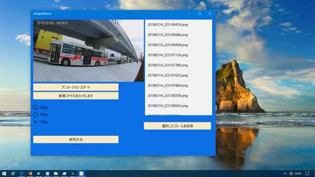 * Output file's Resolution is depended on input image file. * You can choose frame rate in 60(fps),30,24,15,and 10(fps). * Order of images are decided by input file name.