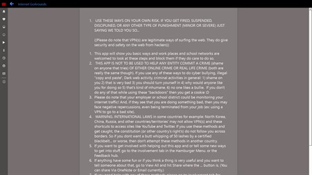 Schools, Workplaces, and Government entities prevent users of their internet to go to websites that are on a list of blocked sites called a filter. This app shows different ways to Go Around filters and blockades.