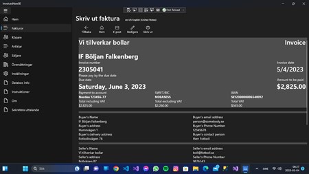 Create invoices. Mainly user interface is in Swedish. Useful for consultants and smal entrepreneurs or companies. Localize your invoice. Translate with Microsoft Bing Translator paragraphs on invoice. Print invoice in English, Polish, Russian, Finnish, Swedish, Chinese, Japanese, Hindi, Hebrew, Spanish and in many, many more languages.