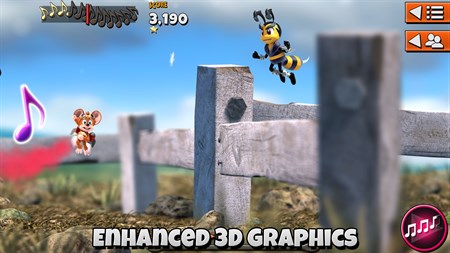 Everyone knows mice can’t fly, but Disco Mouse is fully equipped with a state-of-the-art jetpack capable of blasting through farmyards and woodland as he busts his disco moves. Of course no woodland is without its fair share of creatures and hazards to dodge, so be careful to stay out of trouble or you could lose your groove.