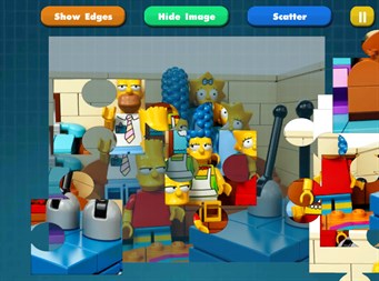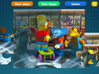 Super Puzzle Jigsaw Lego Simpsons Kids works almost like real jigsaw puzzles for kids. Once you pick a piece it stays on the board even if you place it incorrectly, and you can nudge pieces around until it snaps to the right slot.