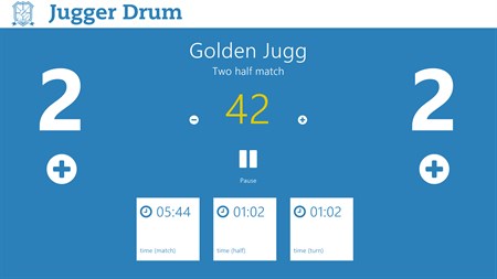 Jugger Drum is an app for counting time and points of a Jugger match, in addition to replace the drummer (or stone thrower) if a person for this job is missing. For each drumbeat a sound is played. Different game speeds (1, 1.5 or 2 seconds per drumbeat) are supported by the app.