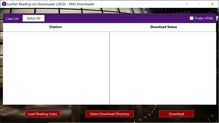 The LawNet Reading List Downloader (LRLD) imports reading lists in Word, PDF, or TXT format and uses regular expressions to extract case citations. Using the retrieved citations, it searches for and downloads the cases that are available from LawNet into a user-selected download directory.