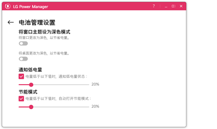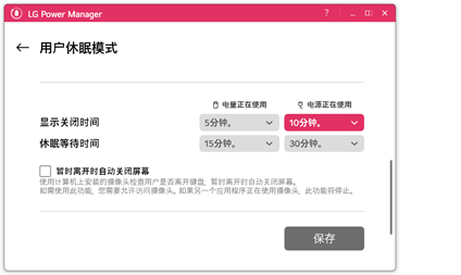 LG Power Manager 允许您根据用户环境配置电源设置,实现对电池的有效管理。