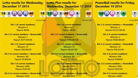 Fast and accurate lottery results for South Africa's Lotto, Lotto Plus and Powerball lotteries.