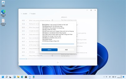 这是一款制作lrc文件的应用。 使用教程: 1、复制歌曲的完整歌词到应用界面到右侧的文本框,注意一行一句歌词,如果有空白行,点击去除空白行按钮。 2、点击添加音频按钮(Ctrl+N)加载歌曲的音频文件,点击下放播放按钮(F1)。 3、当歌曲唱到第一行歌词时候,点击←按钮(F3),此时第一行歌词会被移动到左侧,并打上时间标签。依次类推,当歌曲播放完毕时,右侧所有歌词都被移动到了左侧列表。 4、把进度条拉到最左侧从头再播放一遍歌曲,随着时间的推移,左侧歌词列表会按之前标记的时间时间依次被选中(背景发生变化),此时可以校对那些时间有误差的歌词并且点击加减按钮来调整单句歌词的时间。 5、最后,点击导出歌词——另存为,即可将lrc文件保存到文件夹。