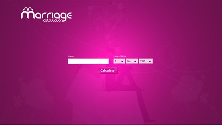 Marriage Calculator is a funny app that allows you to find the most memorable day in your life. We are using our own special numeric algorithm to find out your marriage date.