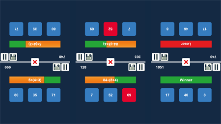 Math Duel is a math addition, math subtraction, math division and math multiplication game where 2 persons are competing on the same device. Its equations consist of the numbers between 1 and 99 and its result is also a number between 1 and 99.