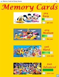 This is a memory game with Disney character cards. It is intended and useful for all ages. There are 4 levels so the user can use the level he wants. Enjoy!!!
