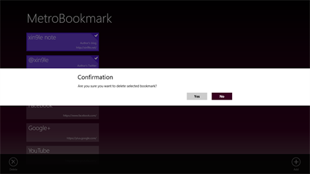 MetroBookmark is a simple & efficient Bookmark Management Tool. You can add, launch, search and share the bookmarks with other apps in the device.
