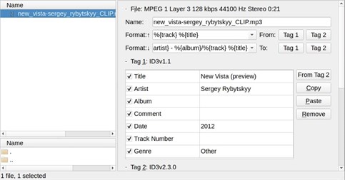 The program is a tool that helps users of MP3 collections organize ID3 tags efficiently. You can edit tags effortlessly. ID3 tags are commonly used to organize music and catalog data attached to mp3 files, such as author, title, genre, album name, and release year. With TagScanner, you can easily edit and organize these tags the way you want. With this application, you can process files individually or perform batch operations. In addition to manually adding tags, TagScanner allows you to search and use data from databases such as online music freedb.org and Amazon. This program allows you to efficiently and easily organize your mp3 collection, making it cleaner and easier to search. TagScanner can batch modify ID3 tags and automatically tag MP3 files.