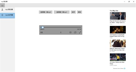 一个操作简单,易用的mp3剪切器;包括剪切和合成功能。可以任意分割mp3格式音频,即时试听,一键保存到本地。