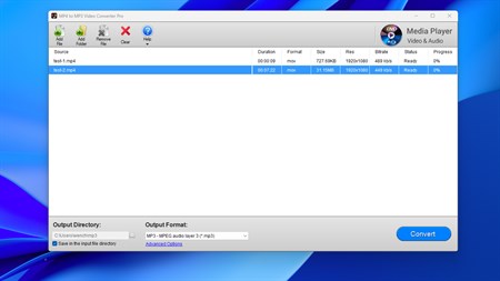 MP4 to MP3 Video Converter Pro is a simple but powerful batch conversion tool that can convert multimedia files from one format to another. All you need to do is to select the source multimedia files, select the target format and click the button "Convert".