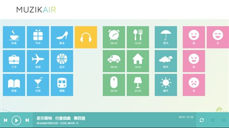 MUZIK Air 新采曲调、情境歌单,全年无休放送多国语言精准搜寻。