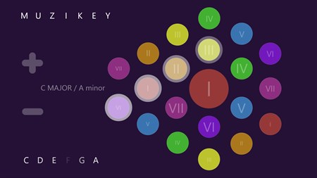 Muzikey Fun Piano is based on the same principle as Frankensound's other app, Songo Chord Finder (also available in the Windows 8 App Store). Songo and Muzikey can work alongside each other using the Windows 8 'snap' function.