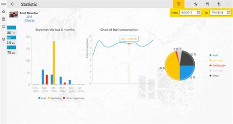 Would you like to know how much you spend on your car? You want to control your expenses and see all the statistics of refills, services and other expenses? Then this app is for you. You only need to enter data about fueling, services or any other costs and application will calculate results and show statistics in various forms, in various categories and for different periods of time. And for added convenience, all data will be available on all your devices running Windows 10 and Windows 10 Mobile