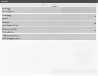 Simple & secure bitcoin wallet with elements of the Fluent Design. - No registration for using. - Fluent design. - Off-line keys generation. - App's data are encrypted on disk and in memory. - Bitcoin payment protocol support. - QR codes generation & scanning. - Network fee policy selection. - Wallets importing & exporting. - Main & Test networks are supported. - Segwit (Bech32) - BIP44. More is comming.