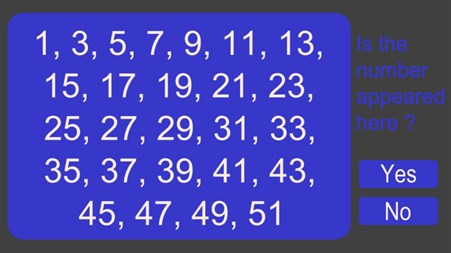 Explore the fun world of numbers with our Mystery Number Challenge! Think of a number between 1 and 52, and watch as the app surprises you by guessing the number you have in mind. The excitement continues as it reveals if the guessed number is present among the displayed cards. It's the perfect entertainment to enjoy quality time with family and friends. Challenge each other, test your intuition, and let the guessing game begin!