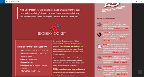 Aplicación destinada a todos los fans de Neo geo pocket y el mundo SNK. Aquí conoceras las últimas noticias y podras debatir en nuestro foro. For all fans of Neo Geo Pocket and SNK . Here you will know the latest news and you can discuss in our forum!