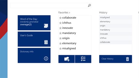 The dictionary app includes a number of features which help you to grow your vocabulary further: * A ‘Favorites’ feature allows you to create your own categories and lists of words from the extensive library, which includes all cross-curriculum words * History list to help you easily review the last visited words. * See words in context with example sentences