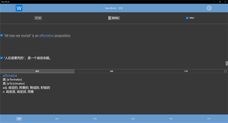 为母语是汉语的人士提供的一个学习英语的工具。自定义句子的文件格式是,单行为英语句子,双行为对应翻译。如果在app设置里面没有发现英语朗读者,请安装语言->英语,步骤为windows 设置->时间和语言->语言->添加首选语言->English->English(United States)或English(United Kingdom)->选项->语音->下载。 特色: 1. 通过句子和句子朗读来记忆,理解单词。 2. 自带词典 3. 朗读位置指示 4. 复制单词(或词组)翻译 5. 单击单词翻译 6. 导入用户句子 7. 查询历史记录 8. 中文词语->英语单词短语