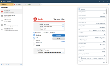 从单一应用程序中同时连接多种NoSQL数据库,快速轻松地创建、管理和维护数据库。 - 提供直观的图形用户界面,极大提高了用户操作数据库的效率。 - 支持多种NoSQL数据库:Redis、Memcached、SSDB、LevelDB、RocksDB等。 - 添加、删除和编辑NoSQL服务器连接。 - 支持多个NoSQL服务器的管理。 - 支持多种键的视图模型。 - 支持多达18种数据格式。 - 查看和搜索缓存中的项。 - 支持手动添加、更新和删除缓存项。 - 提供缓存项的详细信息,如过期时间、大小等。 - 实时查看服务器的统计信息。 - 支持跨库复制数据。 - 支持主从模式、哨兵模式、集群模式。 - 适用于字符串、列表、散列、集合、有序集合、流。 - 通过 shell 执行命令。 - 删除匹配 glob 格式的多个键。 - 通过漂亮的用户界面,用户可以愉快地管理所有数据。