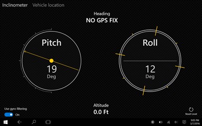 To calibrate the mounting position, - Stop the vehicle on a flat / level ground - Stop the engine - With the device mounted in the vehicle securely, and app launched, single tap the 'reset level' button at the bottom right of the app.