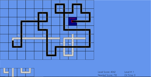 Click one of the four pieces on the bottom, then click a spot on the grid. Make the path from the oil start as long as possible. If the score is high enough, you get another level.