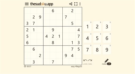 300000+ free sudoku puzzles. Game saves, stats, smart & simple hints, sudoku solver. Dark theme. Keyboard, mouse & touch support. Import your own sudoku puzzles. Printable sudokus. Account cloud sync.
