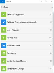 OneList is an aggregator of system workflow tasks across multiple backend applications into an accessible, intuitive and consistent end-user experience for effective and timely decision making. A centralised service definition supports highly configurable user-interfaces including: • Native Mobile Application • Web Application • Outlook Add-in OneList Key Features include: - • OneList is configurable to incorporate all decision tasks across multiple applications with certified Netweaver Gateway integration with SAP. • OneList enables the effective mobilisation of the Fiori MyInbox across multiple mobile device platforms. • Configurable to present the specific information needs and available actions relevant to the organisation and scenario. • Simple and consistent user experience that doesn’t require the user to navigate to the backend applications. • Access to supported scanned documents hosted in SAP, SharePoint, or external document management systems. • Retrieval of real-time supplementary information: OneList can execute a secondary call to a backend application for additional information at the time of completing a task – for example, the ability to view a team leave calendar whilst making a leave approval decision. • Intuitive design allows for rapid user take-up with no training required. • Rapid implementation with cloud-hosted deployment options. • Multiple user interfaces, platforms and devices supported. • Mobile App has offline capability (for decision execution even in aeroplanes!) • Multiple tasks can be selected and a “quick action” applied to all. • Supports flexible centralised customisation of new scenarios and information display without further client deployments. For productive use, the App requires the OneList Server application to be installed and integrated into back-end systems. The server component is available from IQX Business Solutions. OneList is commonly used to approve the following scenarios: • Purchase Requisition Approval • Customer Price Change Requests • New Position Approvals • Rebate Agreement Approvals • New Product Introduction Approvals • Contract Approvals • Leave Approval • CAPEX Approval • Purchase Order Approval • Invoice Approval • Credit Approval