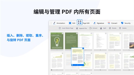 页面编辑 • 旋转、删除、新增、重序PDF页面 • 汇出特定页面并另存为新PDF